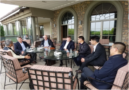 5月3日,美國(guó)迪爾公司草坪設(shè)備全球市場(chǎng)總監(jiān)、全球高爾夫產(chǎn)品線經(jīng)理一行3人走訪了上海地區(qū)高爾夫客戶。