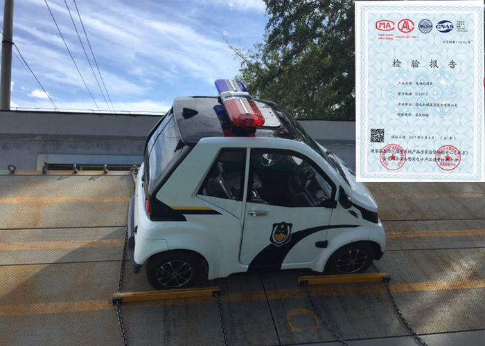 9月8 日, 綠友集團(tuán)自主研發(fā)的GREENMAN 兩座巡邏車順利通過“公安部安全與警用電子產(chǎn)品質(zhì)量檢驗(yàn)中心”型式試驗(yàn)認(rèn)證。取得該認(rèn)證后,綠友兩座巡邏車可以合法地使用警徽等警用標(biāo)志。該認(rèn)證要求較高,綠友車輛以優(yōu)異的性能一次性通過。為了提升GREENMAN 巡邏車在公安、武警、消防等行業(yè)的市場競爭力,我公司委托國家安全防范報(bào)警系統(tǒng)產(chǎn)品質(zhì)量監(jiān)督檢驗(yàn)中心和公安部安全與警用電子產(chǎn)品質(zhì)量檢測中心,針對GREENMAN 兩座巡邏車的主要技術(shù)參數(shù)、制動性能、車外噪聲、側(cè)傾穩(wěn)定性、轉(zhuǎn)向性能、控制設(shè)備絕緣電阻、線束、專用接線盒、續(xù)駛里程、防雨密封性,防火要求等項(xiàng)目進(jìn)行了檢驗(yàn)測試,所有檢驗(yàn)項(xiàng)目均符合檢驗(yàn)標(biāo)準(zhǔn)要求,最終檢測結(jié)果證明了GREENMAN 兩座巡邏車質(zhì)量的可靠性。