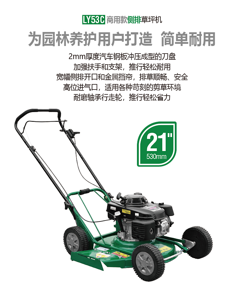 經(jīng)典純側(cè)草坪機(jī),是根據(jù)國(guó)內(nèi)草坪修剪習(xí)慣,設(shè)計(jì)的一款性價(jià)比高的草坪修剪機(jī),結(jié)構(gòu)簡(jiǎn)單耐用,寬大側(cè)排草開口配置金屬金屬擋簾,安全耐磨。